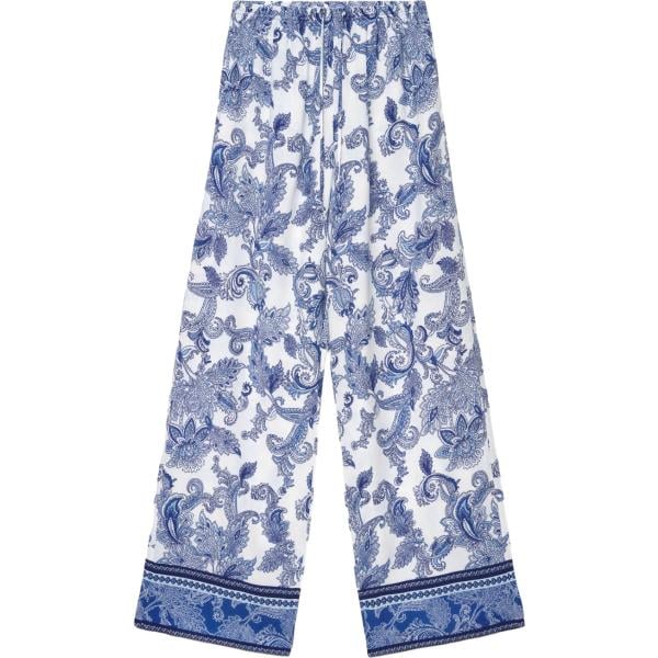 Pantaloni da donna oversize in bianco avorio con stampe a vita bassa con coulisse in plush Freddy