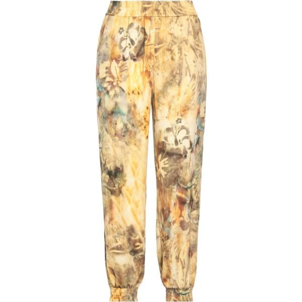 Pantaloni sportivi da donna in giallo chiaro a fiori con ruches a vita alta