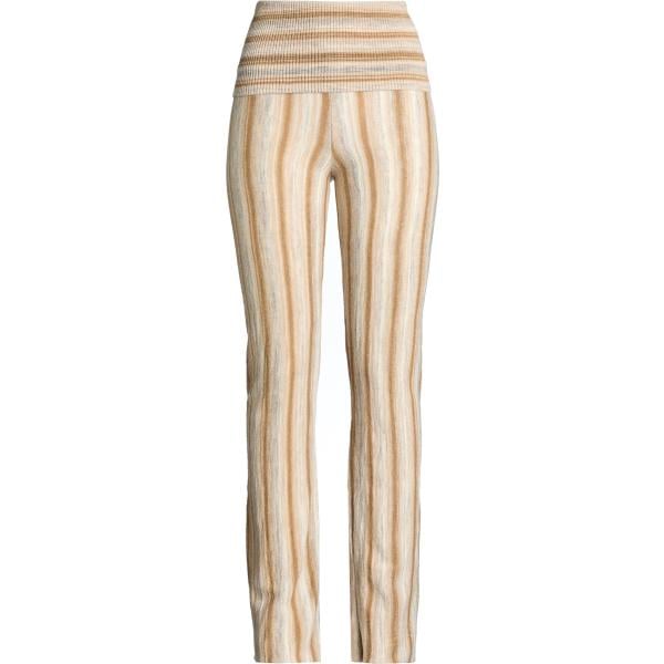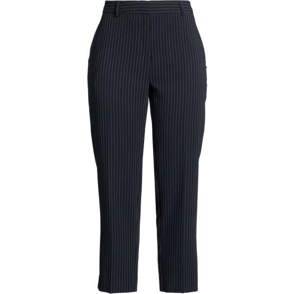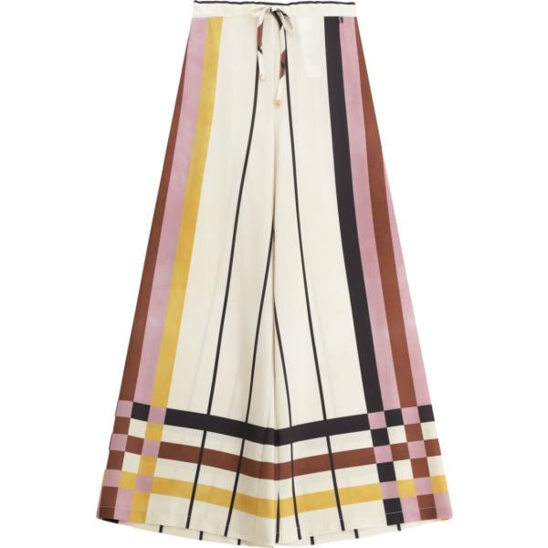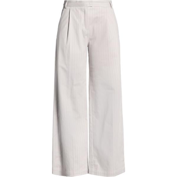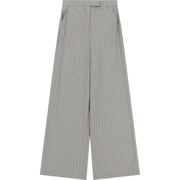 Pantaloni da donna in bianco neve a righe a vita alta con zip in viscosa