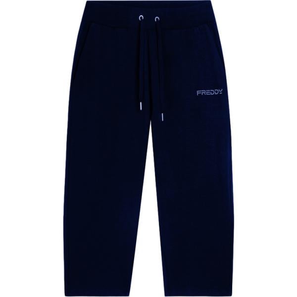 Pantaloni da donna mini in blu scuro con coulisse in lino