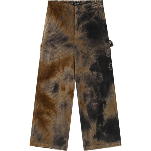Pantaloni da donna in marrone scuro con stampe a vita alta