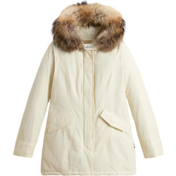 Parka da donna in bianco avorio collo con cappuccio con zip in in ecopelliccia Terranova