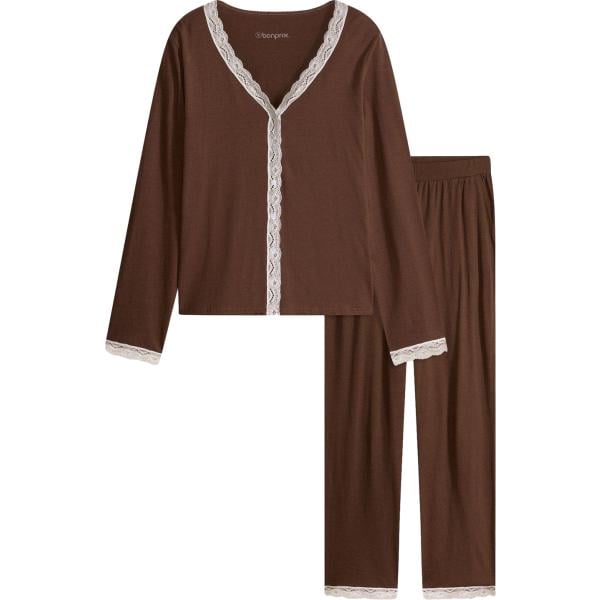 Pigiama da donna in marrone scuro con bottoni