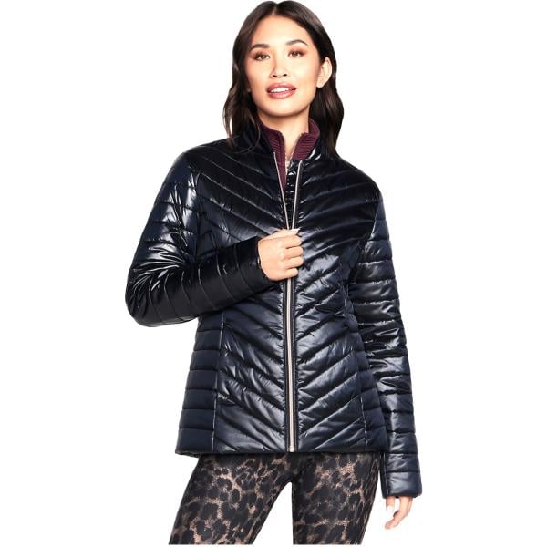 Piumino da donna in nero pece effetto laminato tessuto impermeabile con zip