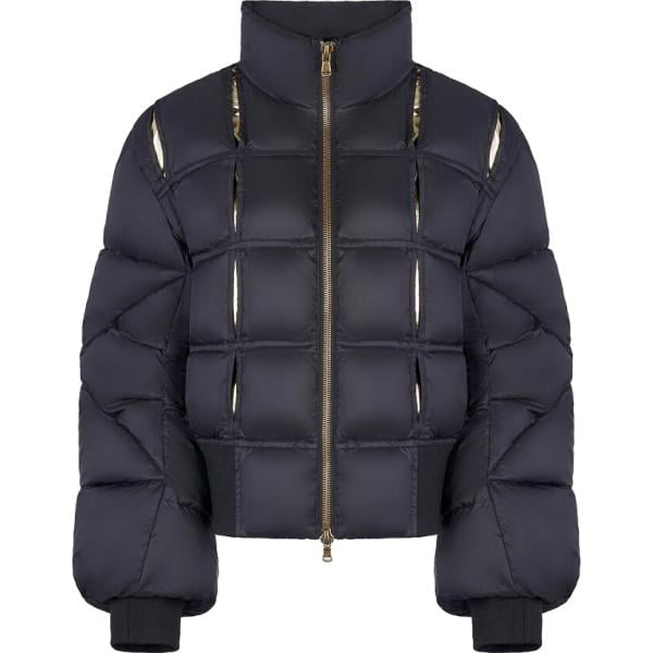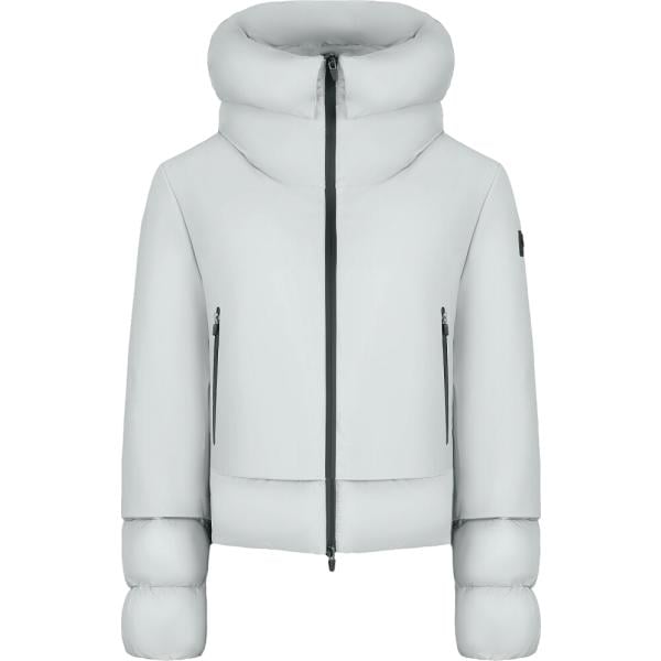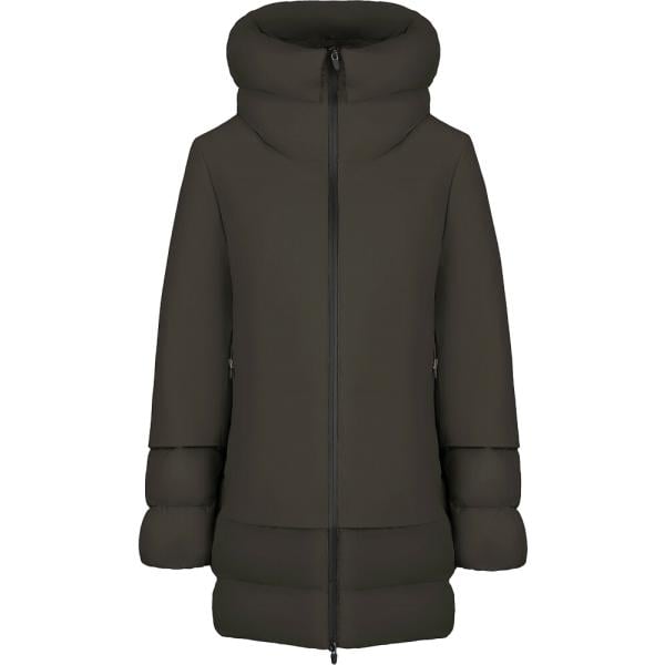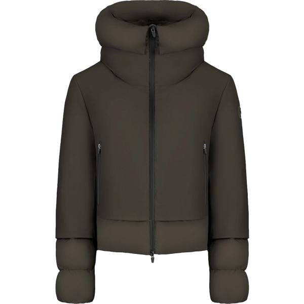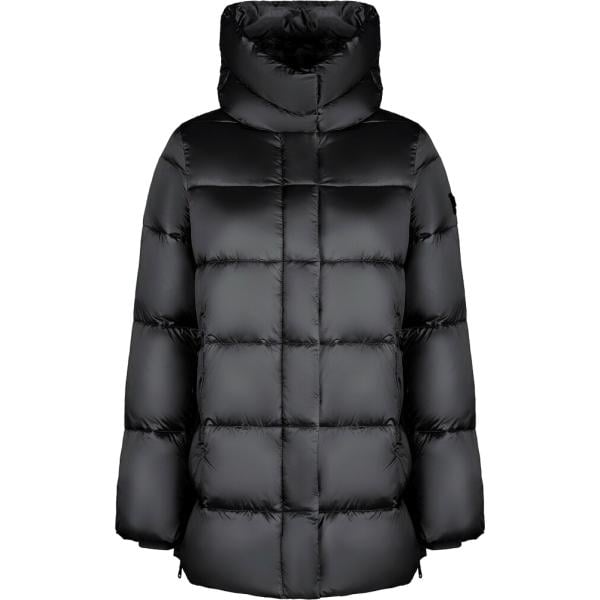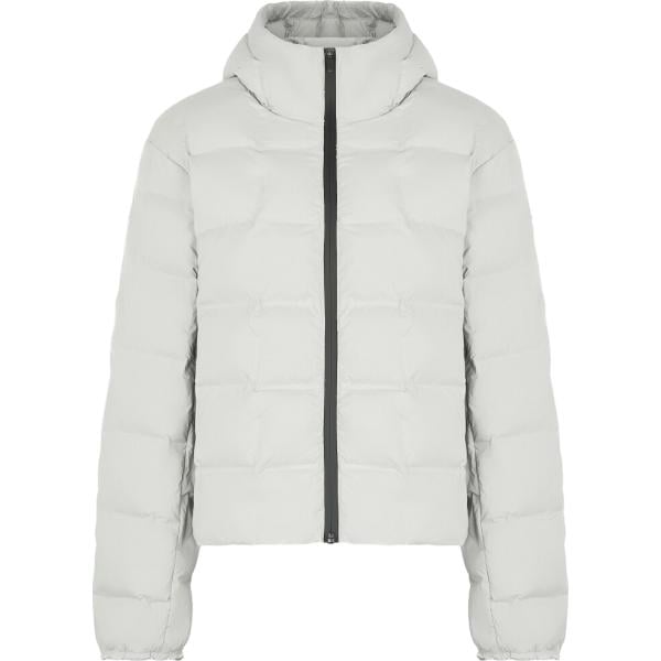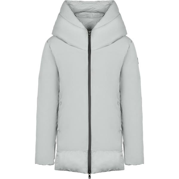 Piumino da donna in grigio scuro collo con cappuccio tessuto impermeabile con zip in poliestere