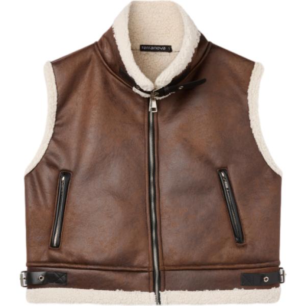 Piumino da donna in marrone scuro collo alto senza maniche Terranova