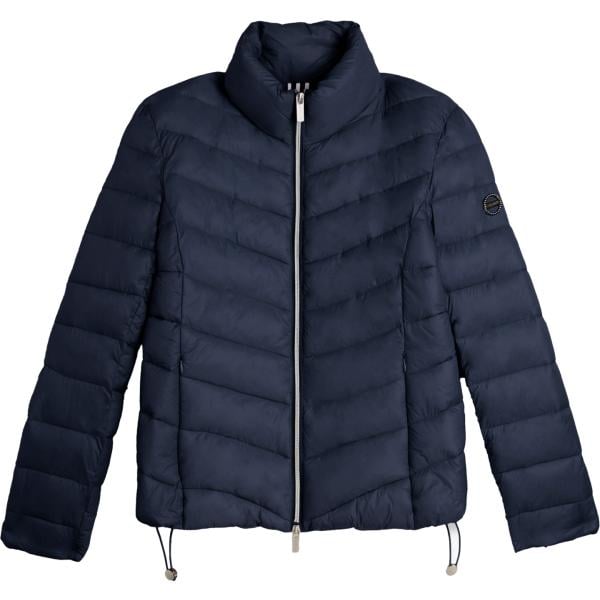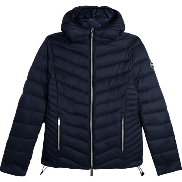 Affronta il freddo con stile grazie a questo piumino trapuntato a bande orizzontali con vestibilità regular e lunghezza appena sotto al punto vita. Il cappuccio e il collo alto rifiniti da una banda in jacquard offrono maggiore comfort e protezione. Realizzato in nylon lucido con trattamento water repellent e imbottitura in fake-down animal-friendly che assicura calore e isolamento anche in presenza di umidità. Chiusura full zip con doppio cursore e fondo regolabile con coulisse per una vestibilità su misura. Completa il look il logo con strass e le tasche frontali con zip.