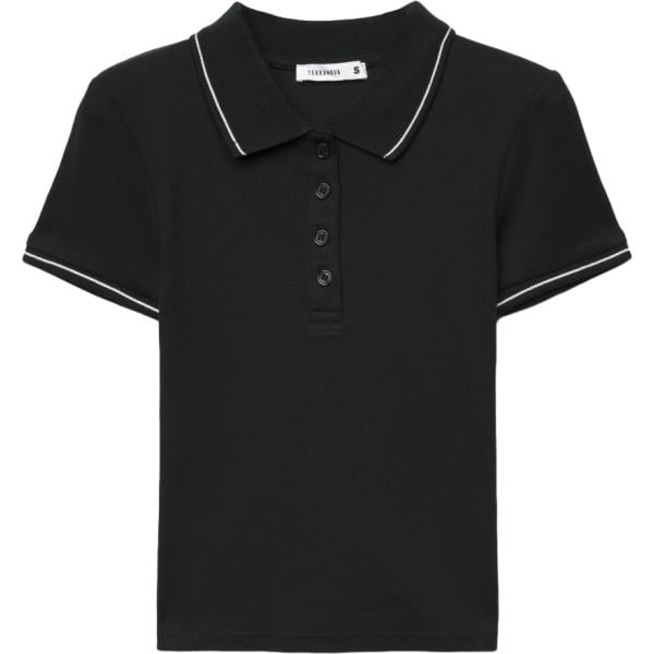 Polo da donna in nero pece lavorato a maglia collo classico intimo con bottoni in viscosa Rinascimento