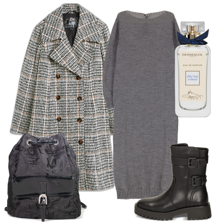 Vestito longuette/midi da donna in grigio in acrilico Dixie, Zaino da donna in nero effetto vernice con cinturino in nylon Valentino Garavani, Profumo da donna in nero Dermacol, Cappotto da donna pied de poule Bonprix, Stivaletti da donna in nero lungo con fibbia Primadonna.