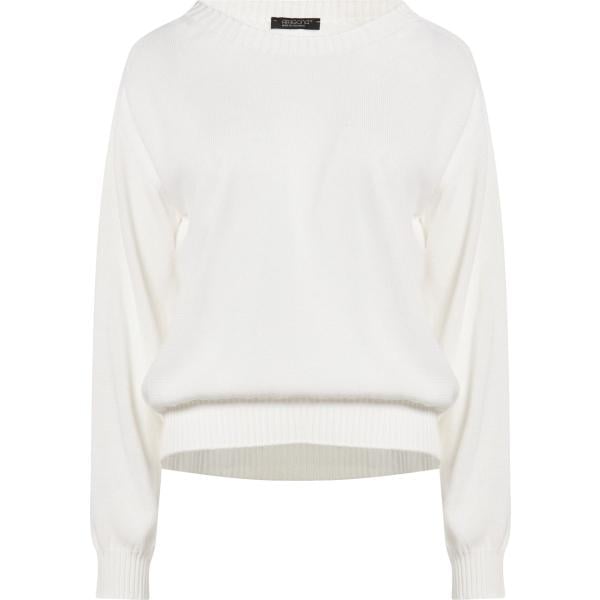 Pullover da donna in bianco avorio collo aperto a maniche lunghe in lana Malìparmi