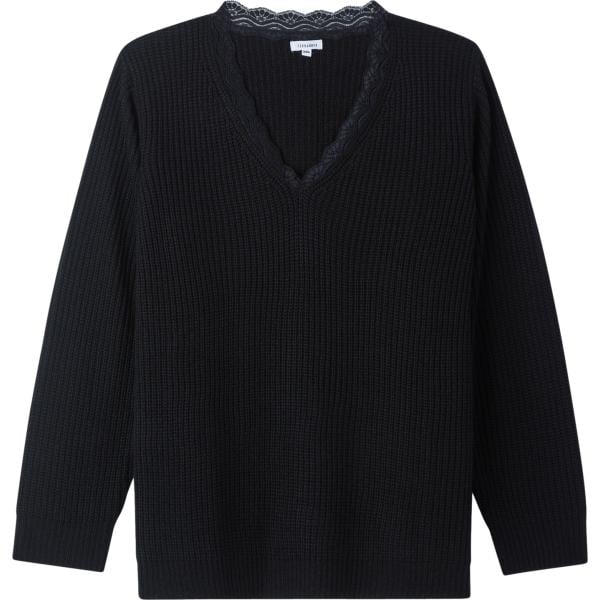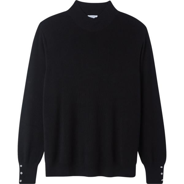 Mocassini da donna in nero pece con strass Terranova, Cappotto da donna in bianco avorio corto in lana bonprix, Pantaloni a palazzo da donna in verde oliva bonprix, Shopping bag da donna in nero pece in pelle bonprix, Pullover da donna in bianco avorio girocollo a maniche lunghe Terranova.