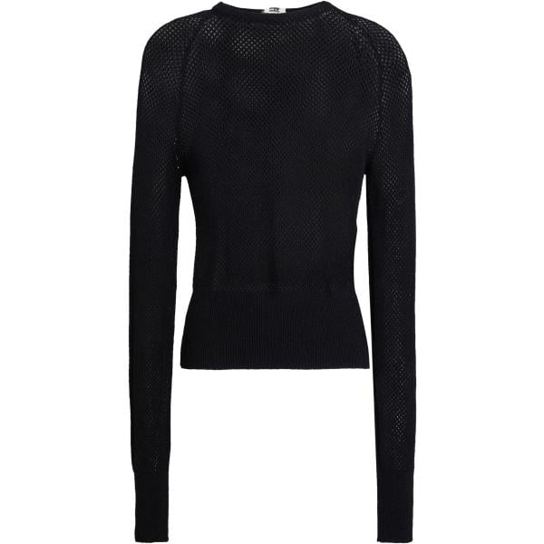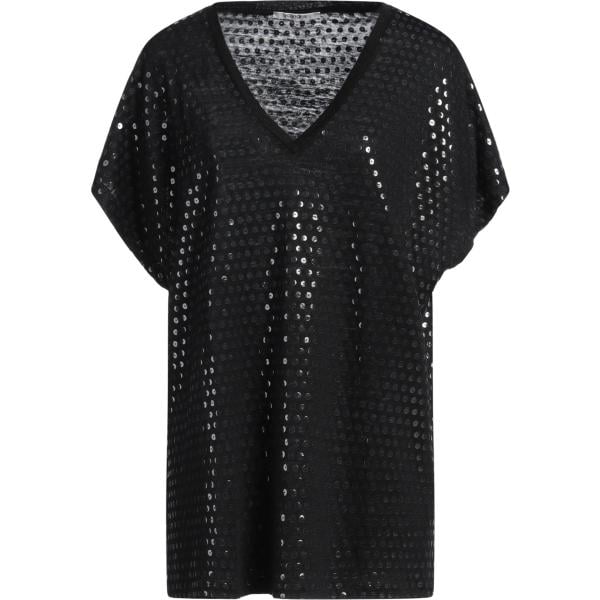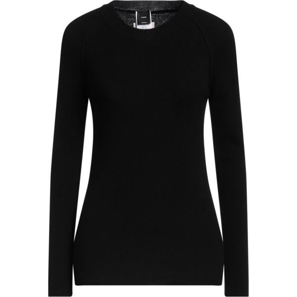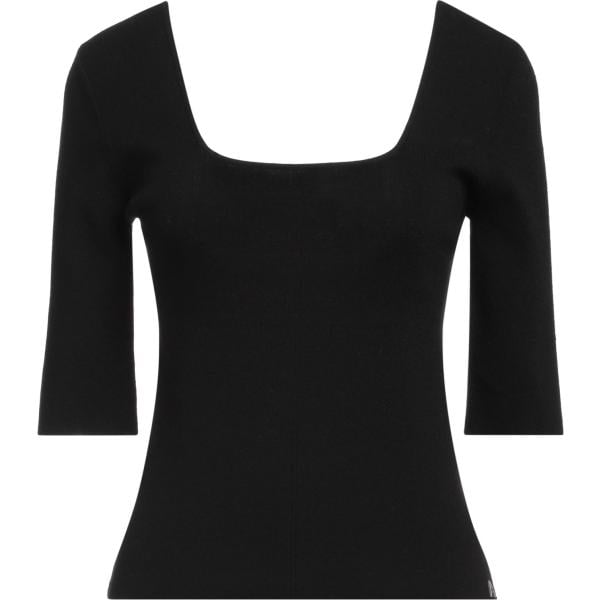 Pullover da donna in nero pece lavorato a maglia collo aperto senza tasche a maniche lunghe in acrilico