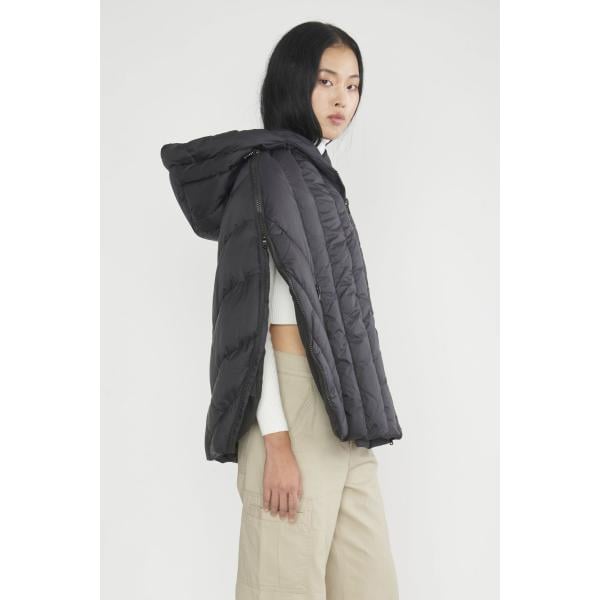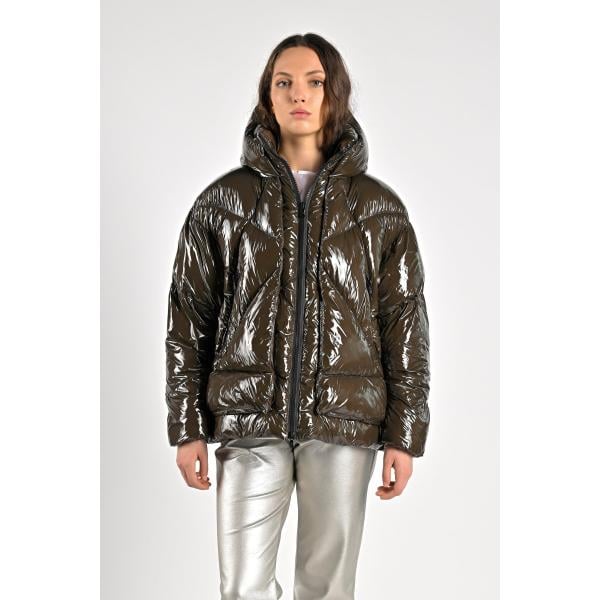 Giacca da donna in nero pece collo con cappuccio in poliestere