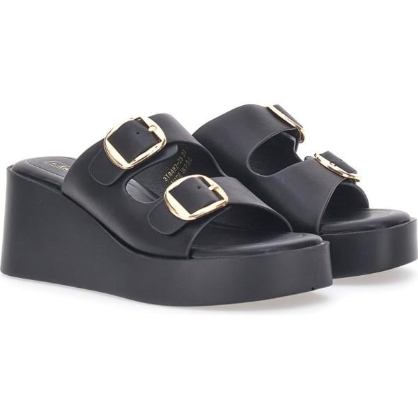 Un nuovo slancio allo stile: platform e carattere! I sandali Mariella Burani K11011 mixano fascino urbano e comfort. Con doppia fibbia dorata e platform a righe, regalano centimetri in più senza rinunciare alla comodità. La tomaia in materie sintetiche avvolge il piede con stabilità e stile. Perfetti per elevare ogni look estivo a un prezzo accessibile.