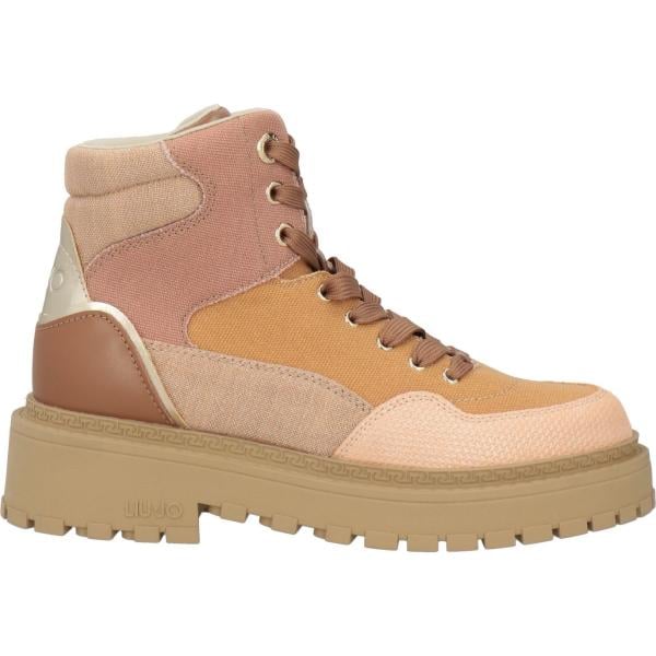 Anfibi da donna in marrone chiaro effetto laminato con tacco squadrato a punta tonda con lacci