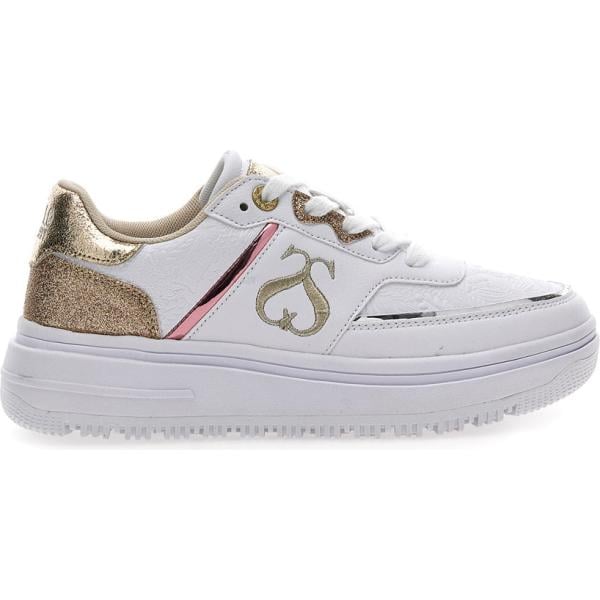 Sneakers da donna in bianco avorio a fiori con glitter platform