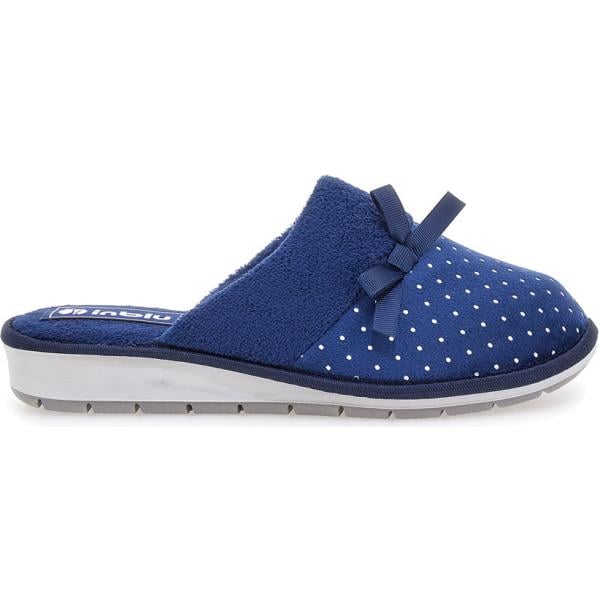 Pantofole da donna in bianco neve a pois con fiocco