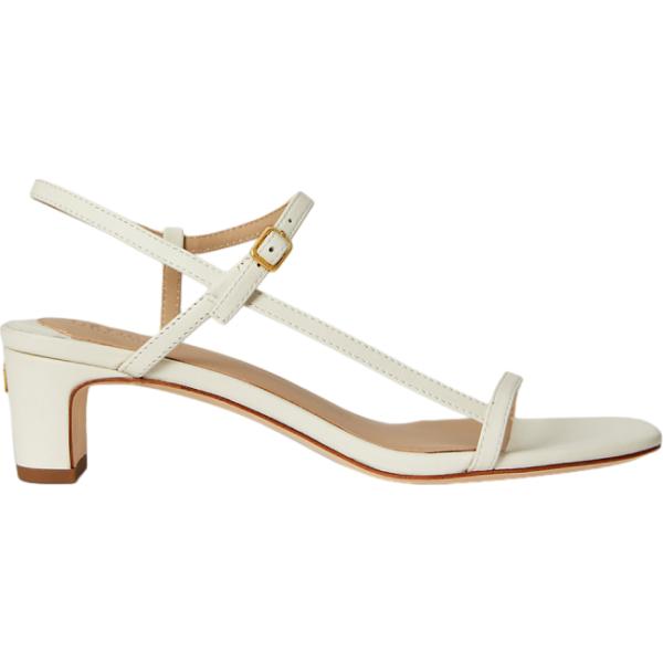 Sandali in pelle da donna in bianco avorio con tacco a punta quadrata in pelle