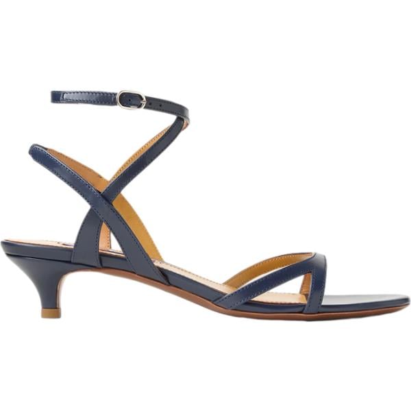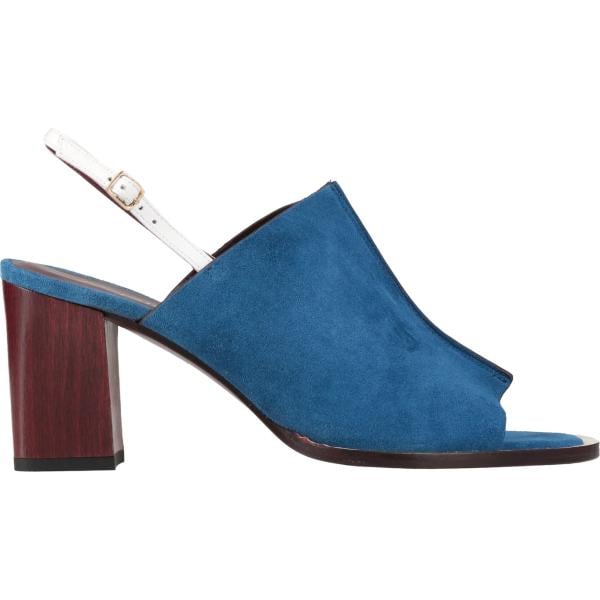 Sandali in pelle da donna in blu medio effetto scamosciato con tacco squadrato a punta tonda con cinturino in pelle