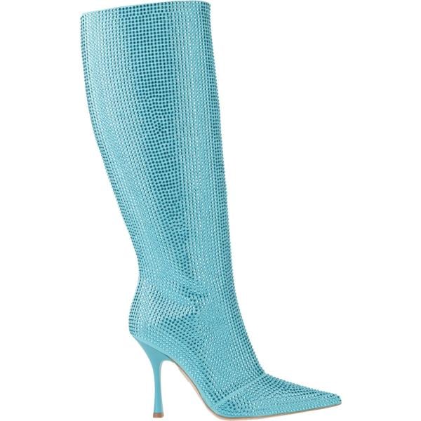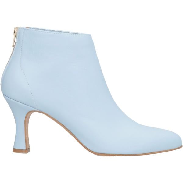 Stivaletti da donna in azzurro con tacco rocchetto a punta con zip in pelle