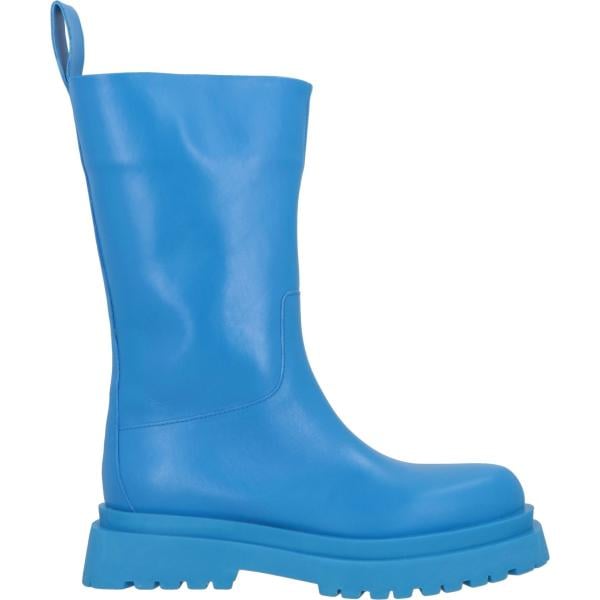 Stivali da donna in blu medio senza tacco a punta tonda con zip in pelle