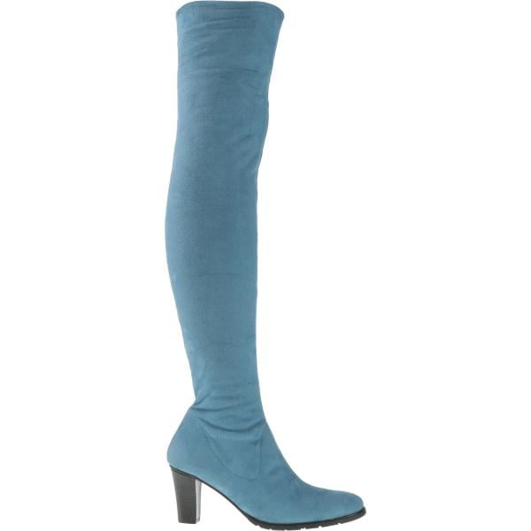 Stivali sopra il ginocchio da donna in blu medio effetto scamosciato con tacco squadrato a punta tonda