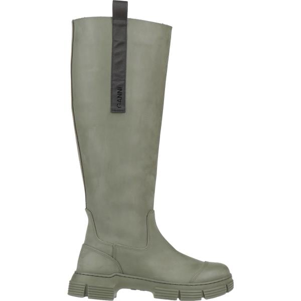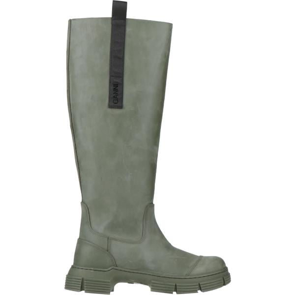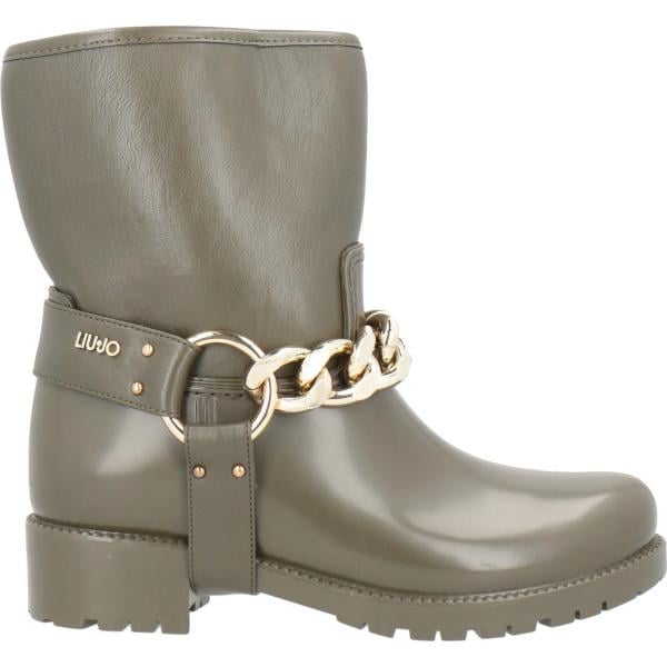 Stivali di gomma da donna in verde oliva senza tacco a punta tonda in plastica