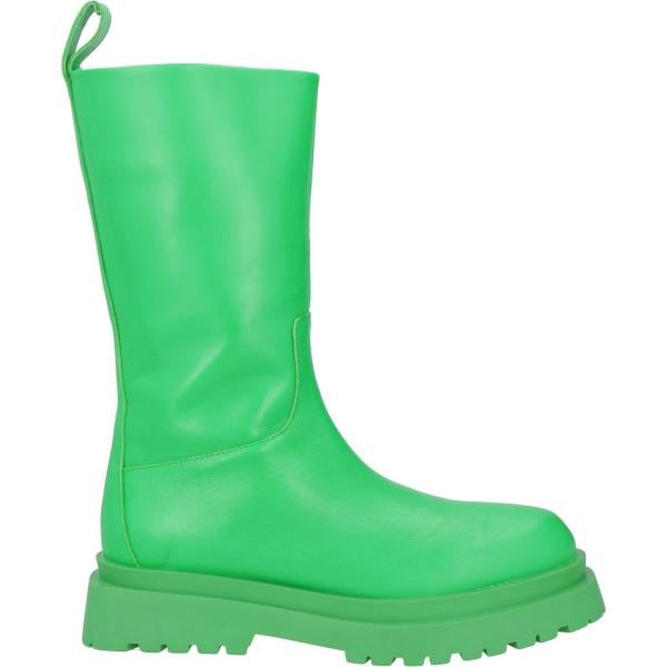 Stivali da donna in verde chiaro senza tacco a punta tonda con zip in pelle