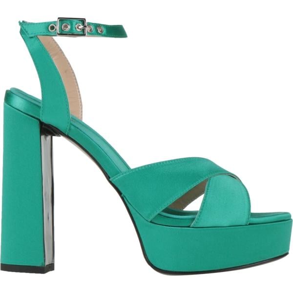 Sandali in pelle da donna in verde scuro con tacco squadrato a punta tonda con cinturino in pelle