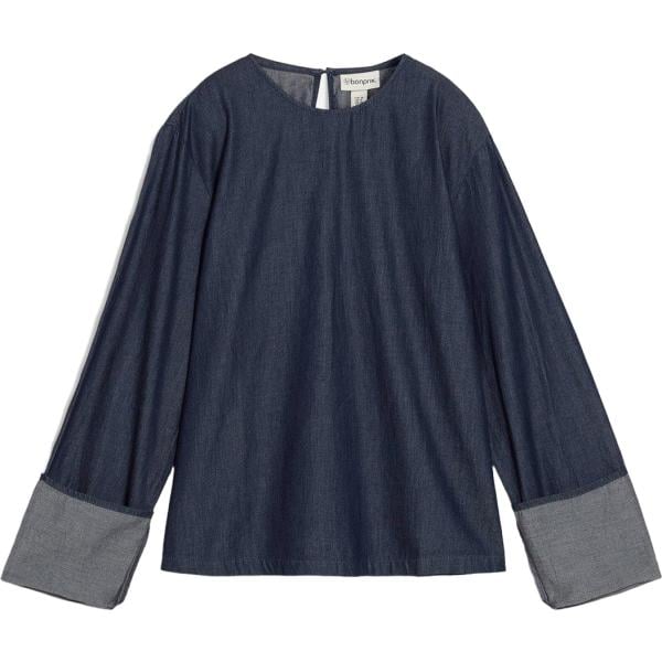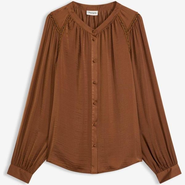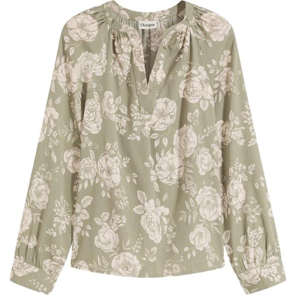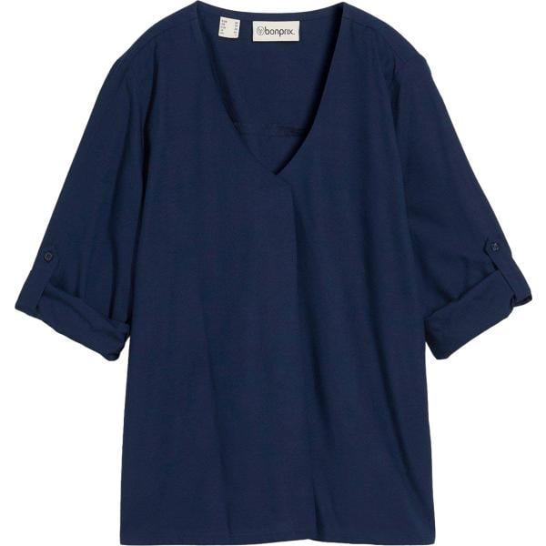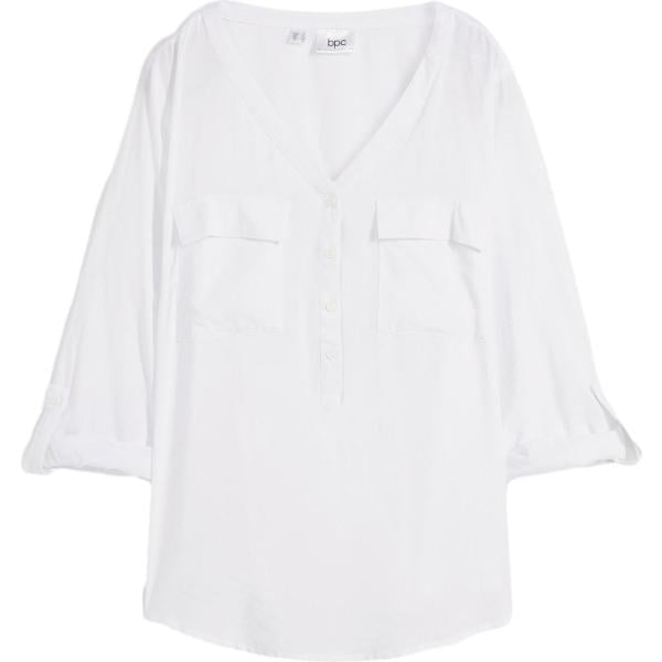 Blusa da donna in bianco neve collo a v a maniche lunghe con cinturino