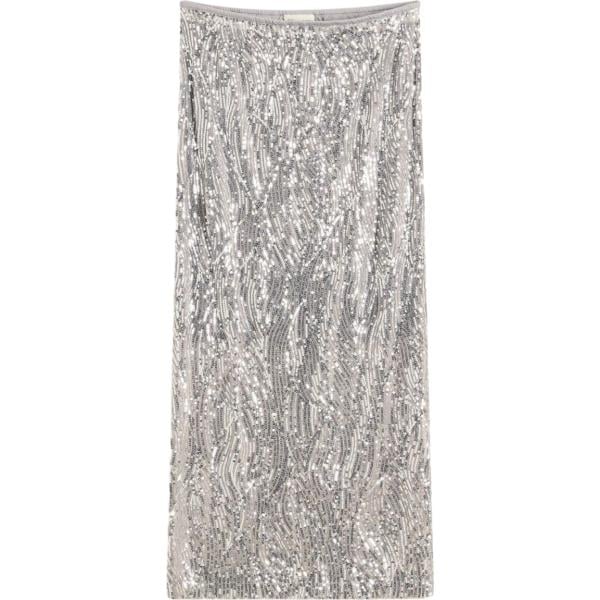 Gonna longuette da donna in grigio chiaro con paillettes