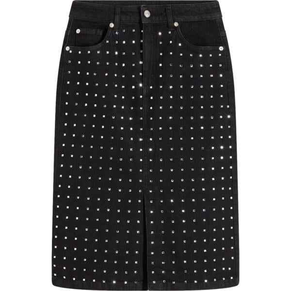 Gonna da donna in nero pece pied de poule lavorato a maglia in viscosa