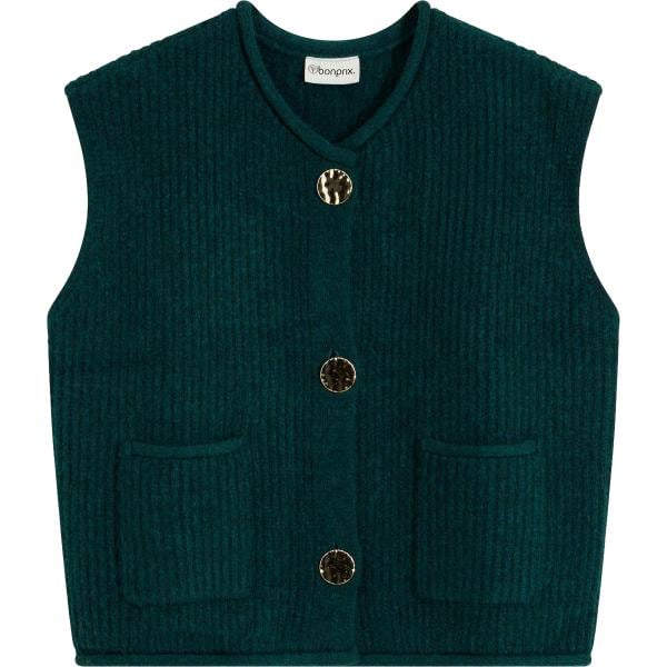 Maglione da donna in verde scuro lavorato a maglia con bottoni