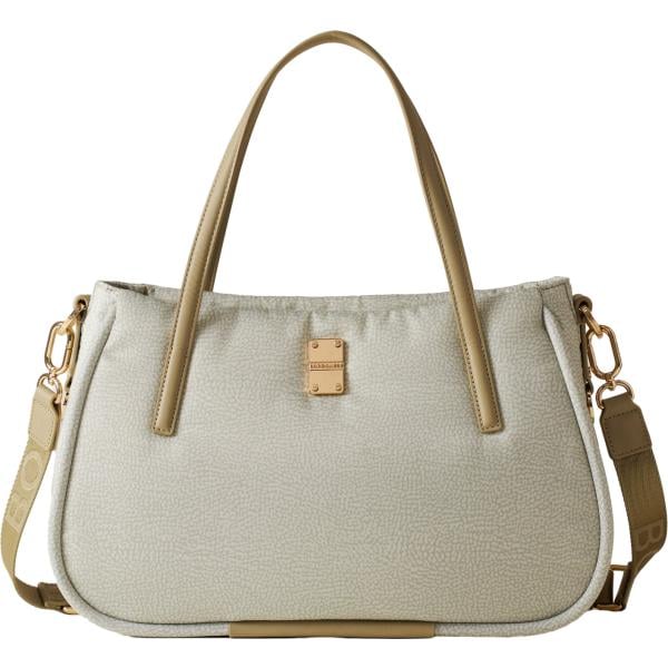 Shopping bag da donna in beige sabbia con zip