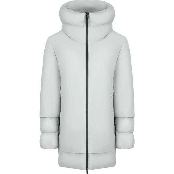 Piumino da donna in grigio chiaro collo con cappuccio con zip in poliestere