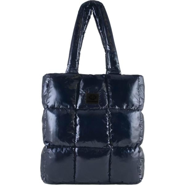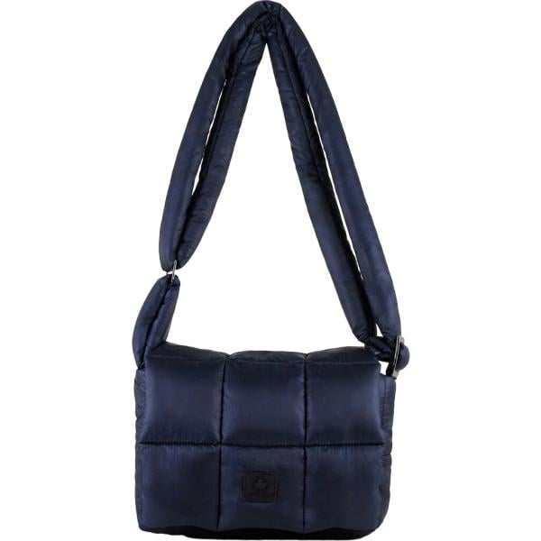 Borsa a spalla da donna in blu medio effetto lucido in poliestere