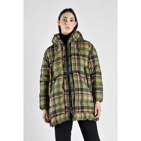 Giacca da donna scozzese collo con cappuccio in poliestere
