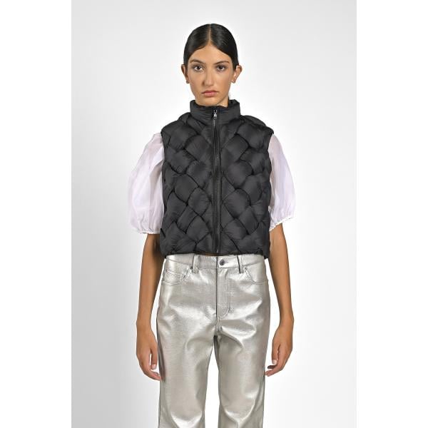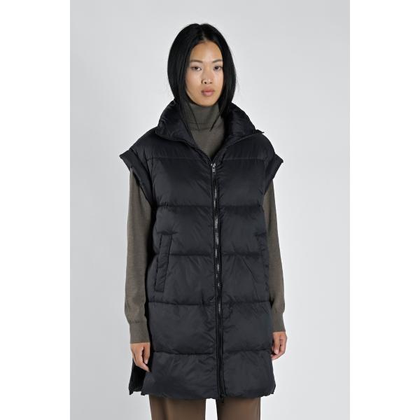 Gilet da donna in nero pece effetto lucido lungo in poliestere