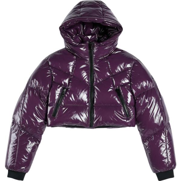 Giacca da donna in viola scuro collo alto corto con zip in poliestere