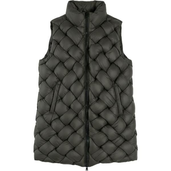 Gilet da donna in grigio scuro effetto lucido lungo in poliestere