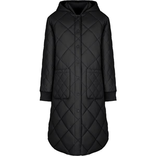 Cappotto da donna in nero pece plissè collo con cappuccio lungo con zip in poliestere