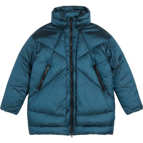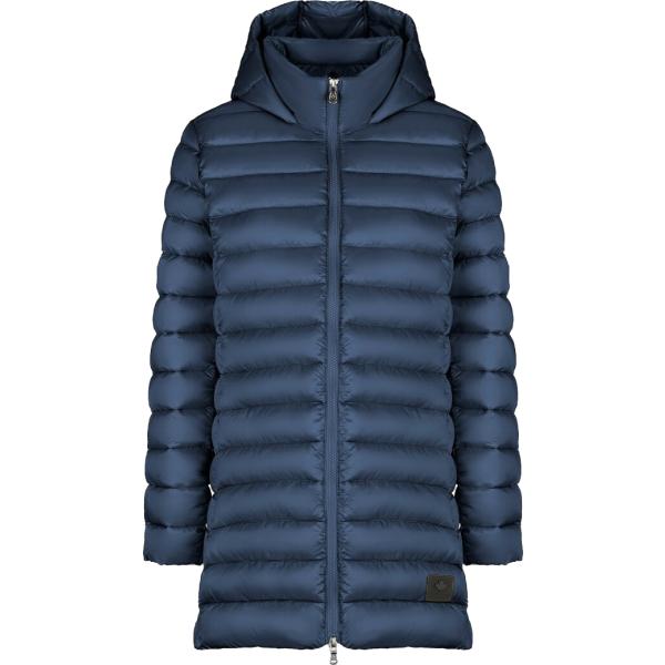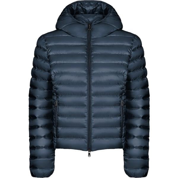 Giacca da donna in blu scuro collo con cappuccio lungo con zip in nylon
