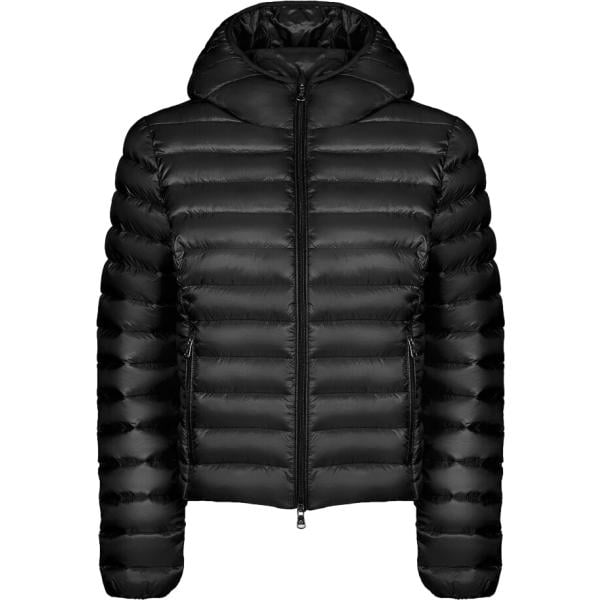 Piumino da donna in nero pece collo con cappuccio con zip in poliestere
