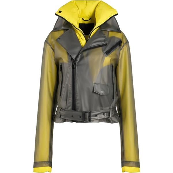 Giacca da donna in grigio scuro effetto fluorescente collo alto con zip in poliestere