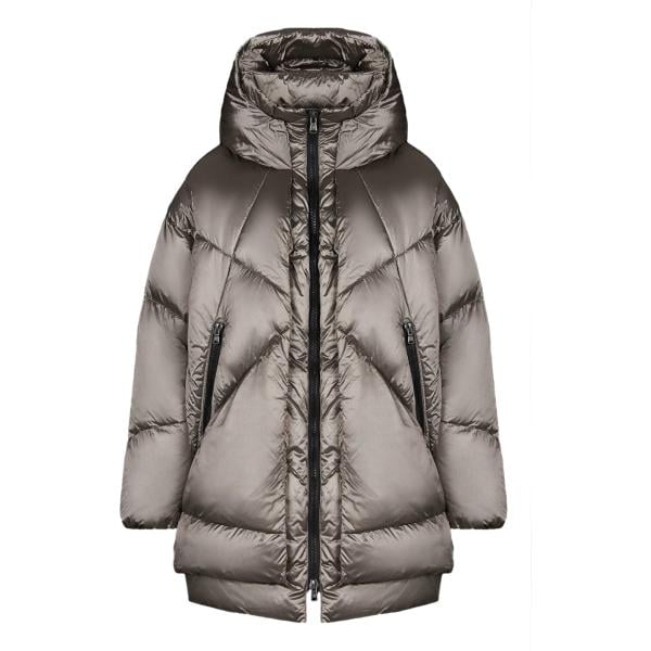 Giacca da donna in grigio scuro collo con cappuccio lungo con zip in nylon