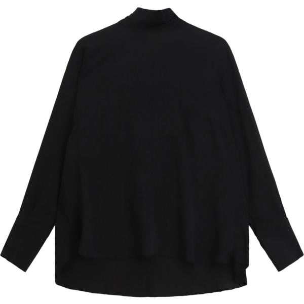 Blusa da donna in nero pece collo alto a maniche lunghe