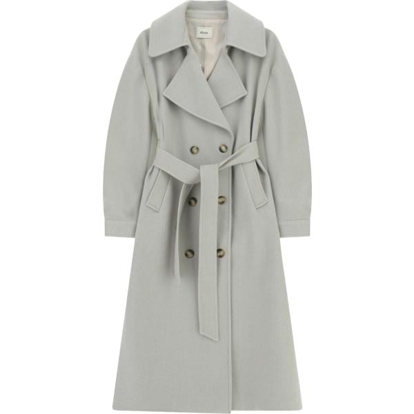 Cappotto da donna doppiopetto in grigio chiaro collo con revers maxi con cintura