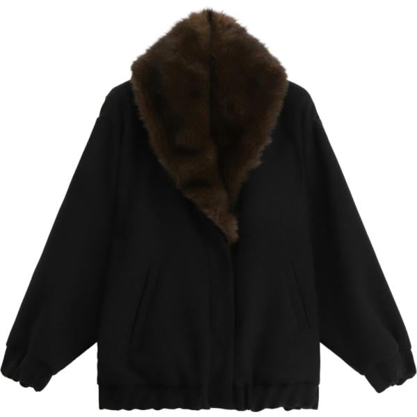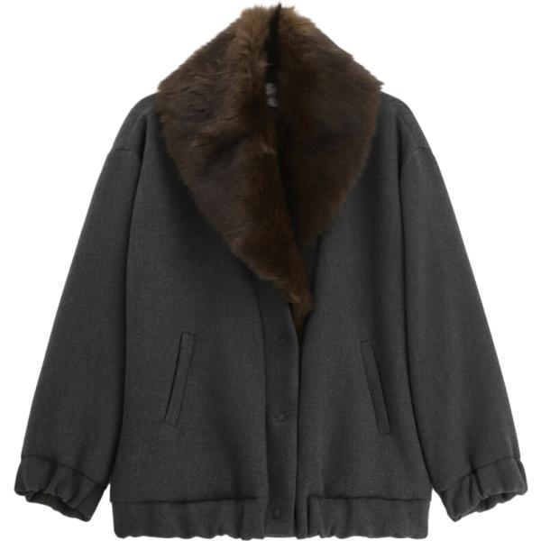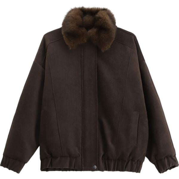 Bomber da donna in marrone scuro con zip in in ecopelliccia