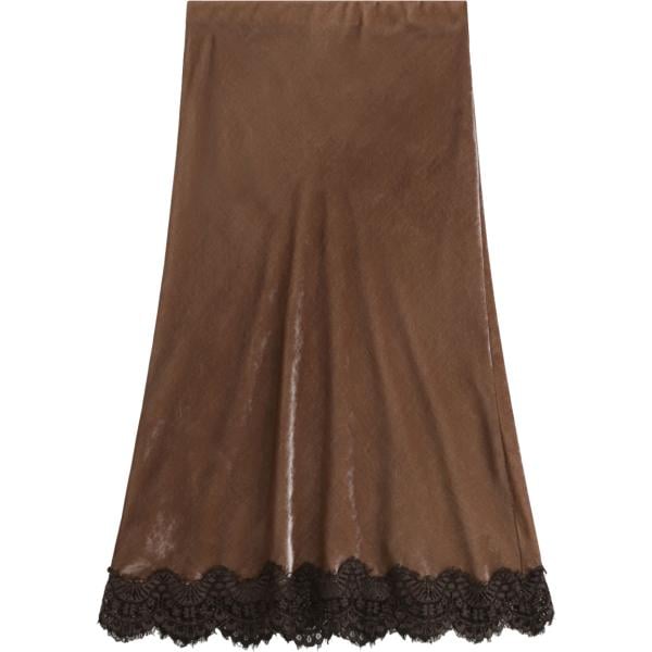 Gonna lunga da donna in marrone scuro con pizzo lungo