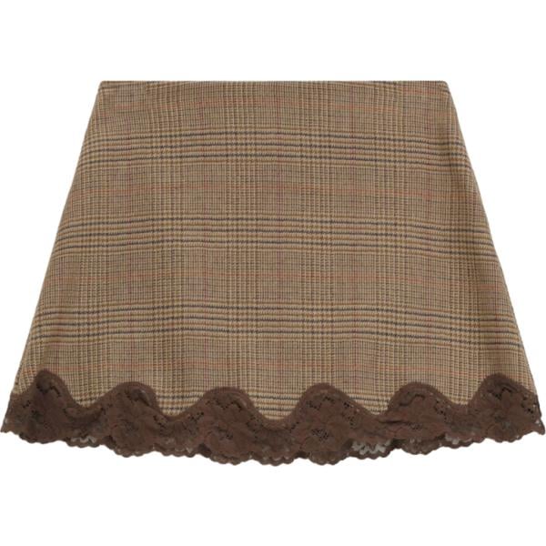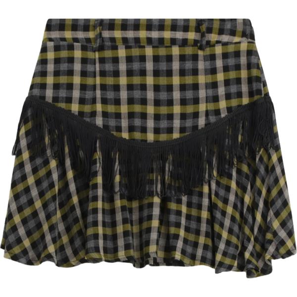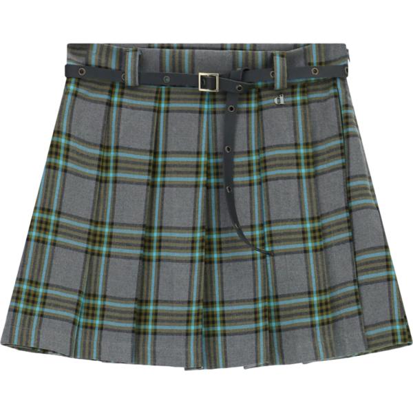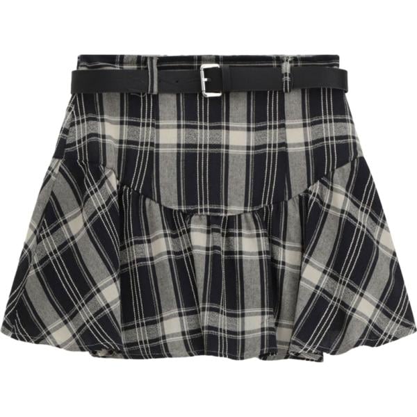 Minigonna da donna in grigio scuro scozzese corto con cintura